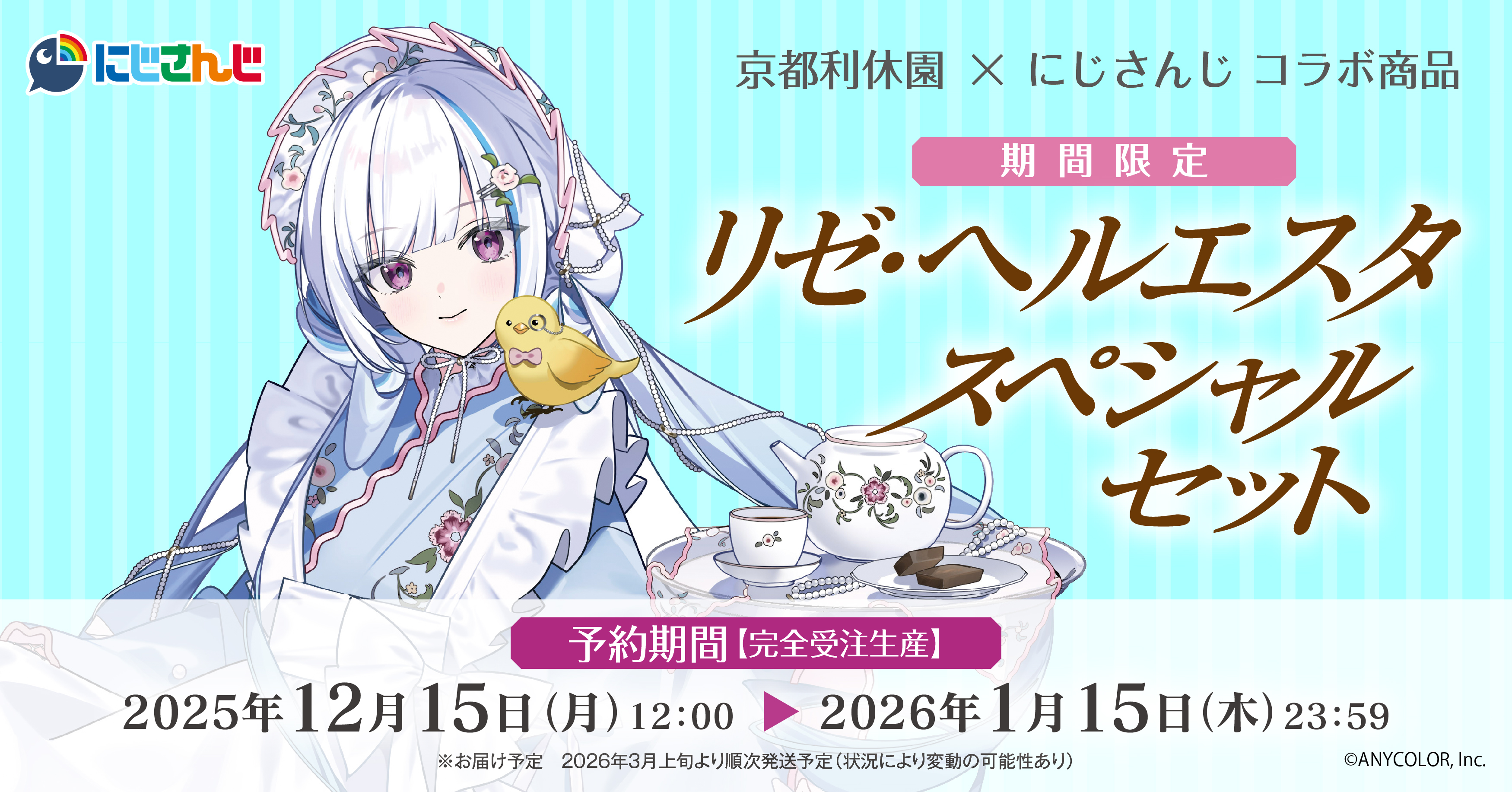 - 2025年2月28日 「にじさんじ」×「紀乃屋」×「京都利休園」『伏見ガク スペシャルセット』期間限定発売!2025年3月3日予約販売開始!!